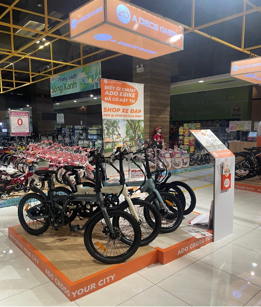 ADO tại AEON Bình Tân là đây là một đại lý xe đạp trợ lực điện nổi tiếng tại TP.HCM với nhiều năm kinh nghiệm trong lĩnh vực này. Với sự kiện trưng bày xe lần này, ADO Bình Tân sẽ mang đến cho khách hàng một trải nghiệm thú vị về những sản phẩm và dịch vụ mà đại lý này cung cấp.
